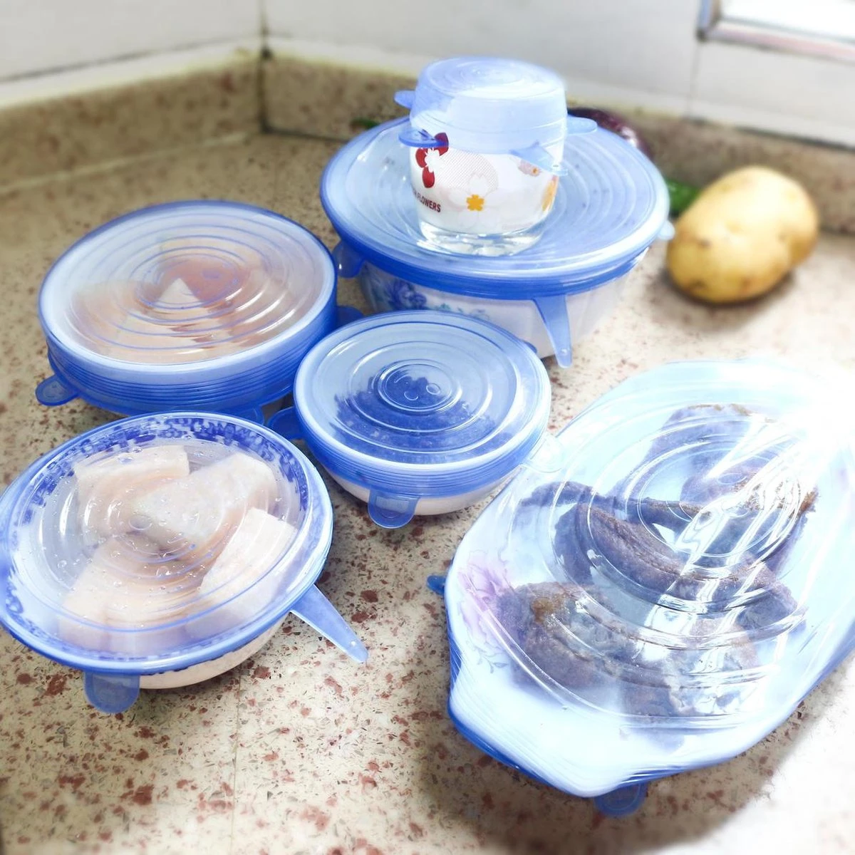 Siliconen Vershoud Deksels – Set Van 6 Stuks – Flexibel – Herbruikbaar – Wit – Stretch Tot Wel 30 Cm