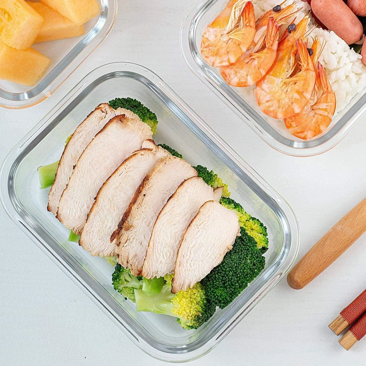 De glazen opslagcontainers zijn 100% BPA-vrij en gemaakt van hoog borosilicaat glas voor gemakkelijke verwarming en duurzaamheid. Niet-poreus glas, 100% vrij van schadelijke chemicaliën. (BPA-vrije deksels, speciaal ontworpen kliksluiting, geen lekkende deksels zijn volledig lucht- en vloeistofdicht.)