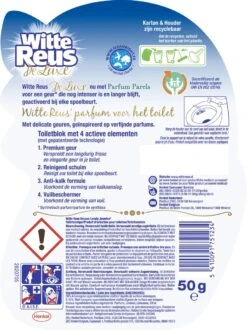 Vind jij ook dat je toilet een unieke en luxe geur verdient? Witte Reus De Luxe Lovely Jasmine is het eerste toiletblok met parfum die uw toilet een elegante en premium geur geeft. De geur is geïnspireerd door verfijnde parfums, maar het product geeft je ook de vertrouwde Witte Reus frisheid.
