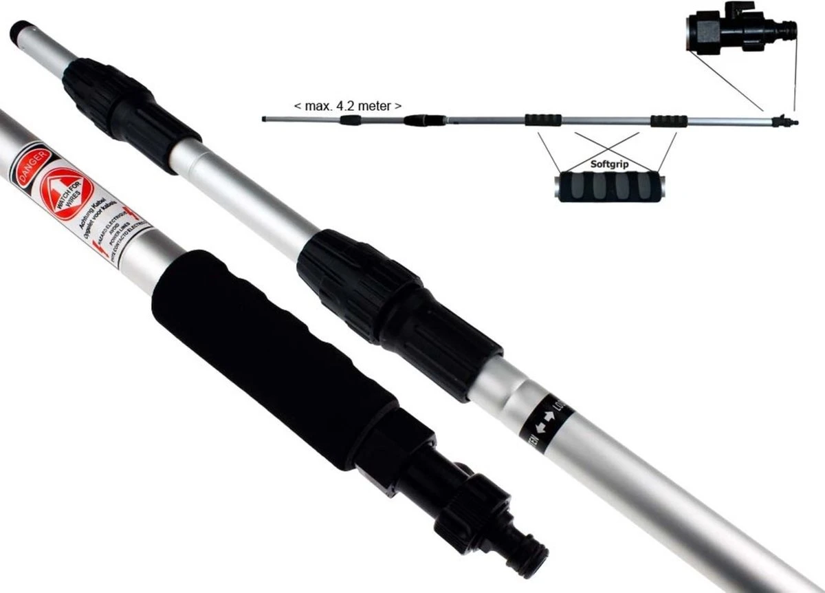 Zonnepanelen / Auto / Ramen Wassen Telescoopsteel Met Borstel Waterdoorlatende Wasborstel Met Telescopische Steel 4 Meter En Gardena Aansluiting / Wasborstel Met Uitschuifbare Telescoopsteel Met Waterdoorvoer